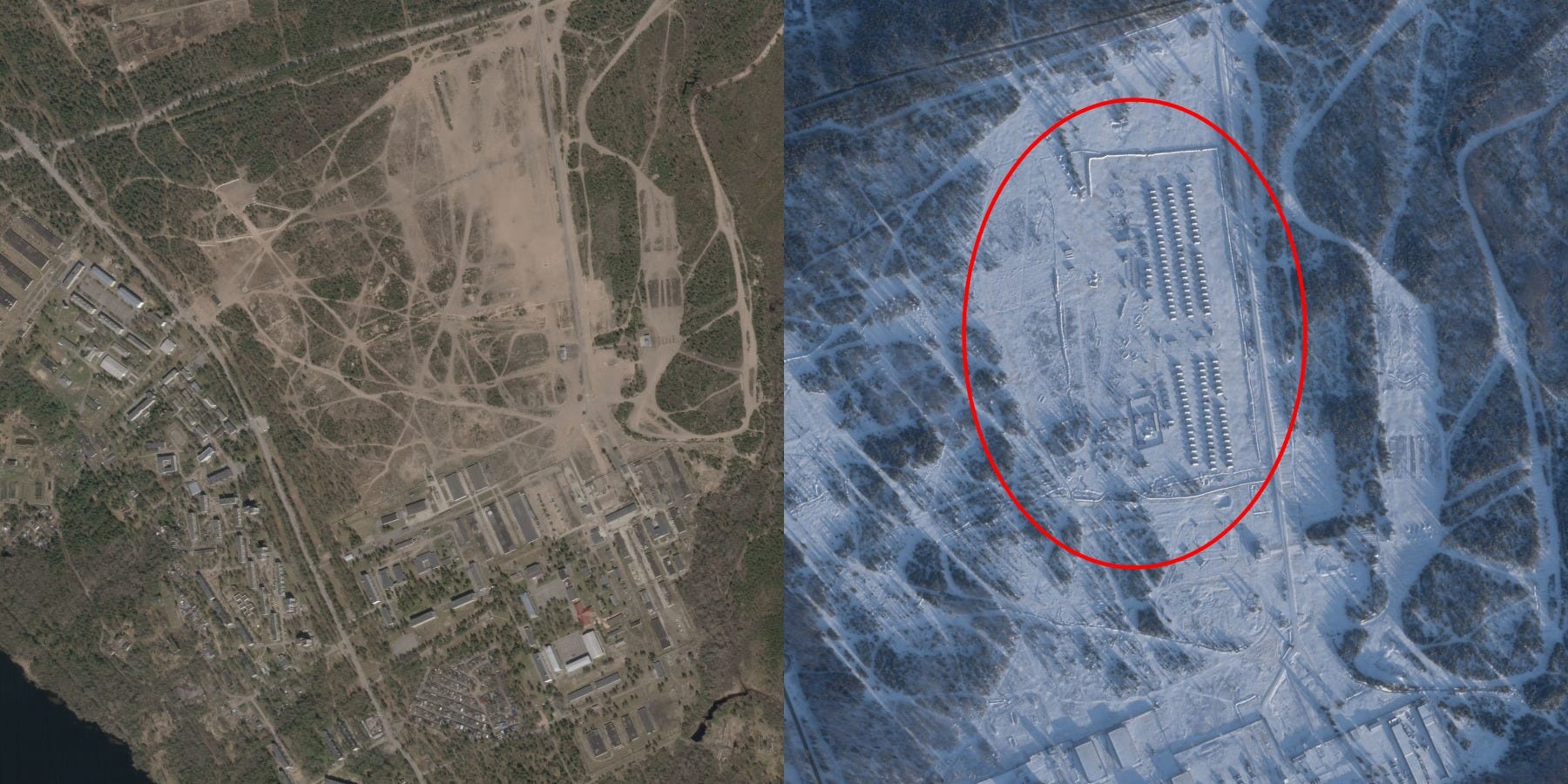 Satelitní snímky z let 2022 a 2025 ruské základny Kamenka u finské hranice ukazují NOVÁ UBÝTKOVÁ ZAŘÍZENÍ, hlásí finská výzkumná skupina Black Bird Group.