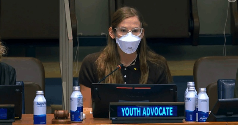 Devätnásťročná prváčka z Univerzity v Yale, ktorá počas celého prejavu mala nasadený hrubý respirátor N95, povedala, že nosenie rúšok a filtrácia vzduchu by sa mali považovať za základné ľudské práva a mali by byť natrvalo začlenené do každodenného života.