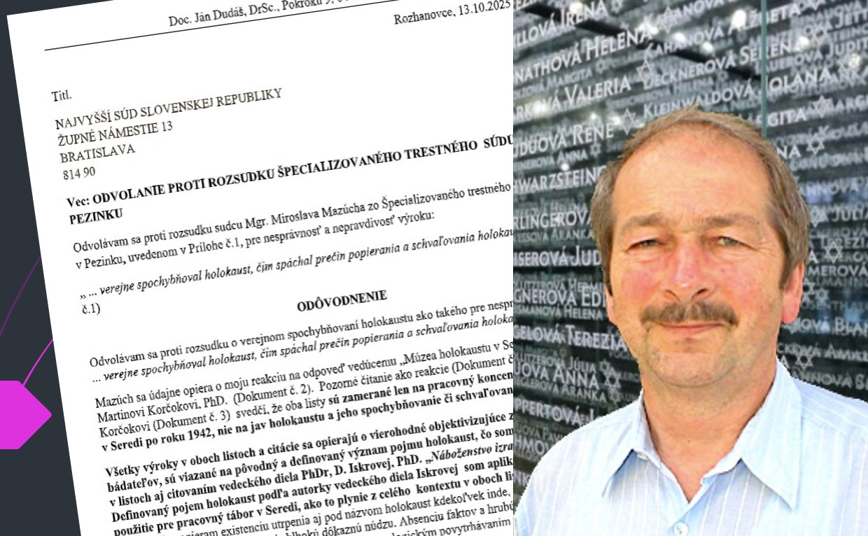 Špecializovaný trestný súd v Pezinku uznal vysokoškolského pedagóga Jána Dudáša za vinného zo spáchania prečinu popierania a schvaľovania holokaustu. Sudca Miroslav Mazúch vyhlásil, že „sloboda prejavu nie je bezbrehá“ Doc. Ján Dudáš sa voči svojvôli sudcu a prokurátora odvolal…