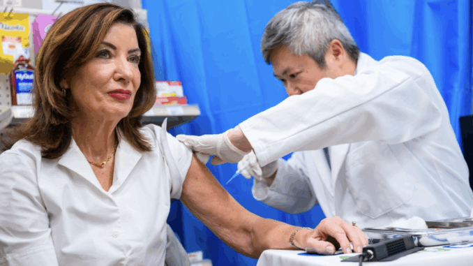 Guvernérka státu New York Kathy Hochul si nedávno nechala aplikovat veřejně propagovanou posilovací dávku proti covidu, ale to, co mělo být demonstrací důvěry v očkování, se rychle změnilo v internetový skandál.
