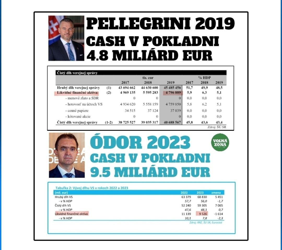 Pointa je však to, že z tých požičaných peňazí nechal Ódor v kase 9.526 miliardy eur a vláda SMER-SD, HLAS-SD a SNS tak nastupovala s kasou plnou v sume takmer 10 miliárd eur.