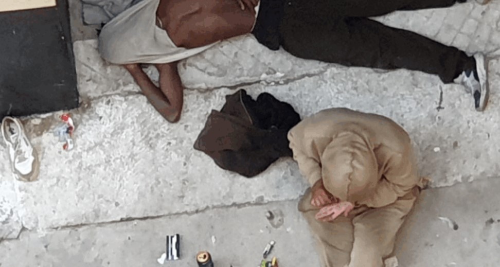 Snímky sdílené městskými úředníky ukazují vyhublé lidi ležící na chodníku se stříkačkami v rukou nebo zhroucené u zdí obklopené kufry, přikrývkami a provizorním ložním prádlem – scéna, která se podle obyvatel stala součástí každodenního života.